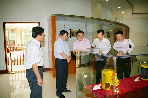 2010年7月14日,山東省輕工業(yè)協(xié)會會長李偉鳴一行來集團,對集團總工程師張鋒國榮獲2009年度山東省首席技師表示祝賀,為其頒發(fā)了證書和津貼,并到齊魯酒文化博物館視察工作。圖為集團董事長趙紀文陪同視察。