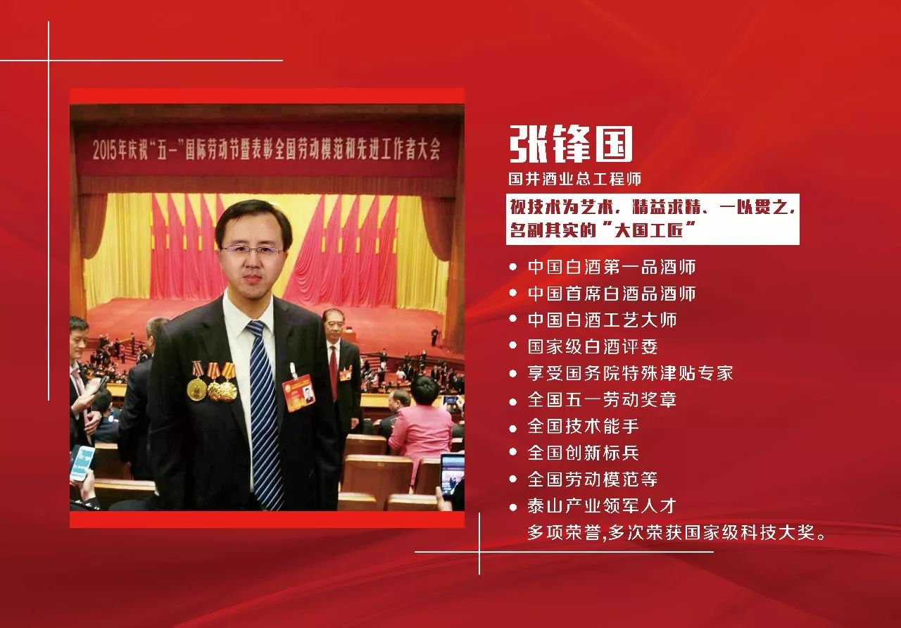 從1989年至今已整整28年。28年來,張鋒國一直秉承嚴(yán)肅認(rèn)真的態(tài)度來完成自己的使命,作為中國第一品酒師、享受國務(wù)院特殊津貼專家、中國白酒工藝大師、全國技術(shù)能手、國家級(jí)技能大師、國家級(jí)白酒評(píng)委、全國五一勞動(dòng)獎(jiǎng)?wù)芦@得者,張鋒國幾乎獲得了全國白酒技術(shù)層面的所有獎(jiǎng)項(xiàng)和成就,但他卻依舊為人低調(diào),堅(jiān)守工匠精神,視技術(shù)為藝術(shù),精益求精,一以貫之,是名副其實(shí)的“大國工匠”。