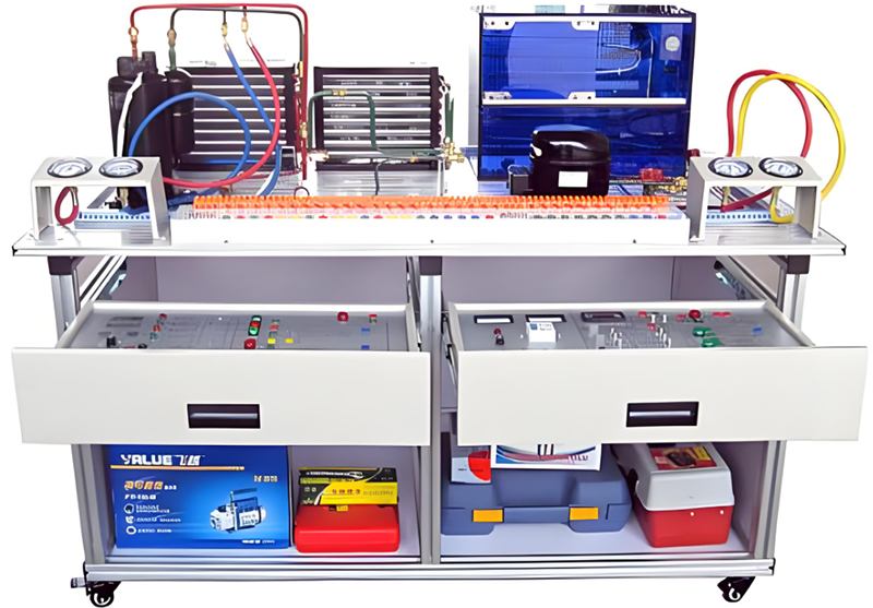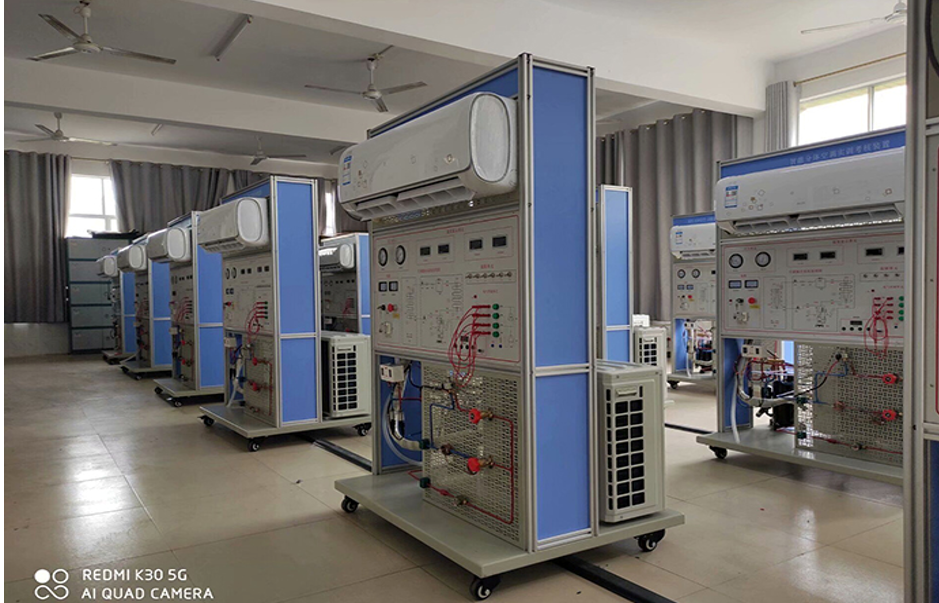 制冷制熱實訓設備,制冷制熱實驗臺,空調(diào)實訓臺,制冷制熱實訓室是根據(jù)《教育行業(yè)標準-電子技術應用專業(yè)儀器設備配備標準》勞動和社會保障部發(fā)布的《家用電子產(chǎn)品維修工職業(yè)技能實訓和鑒定設備技術規(guī)范》制冷制熱實訓要求而研制的,制冷與制熱實訓臺適合高職院校、中職學校的應用電子技術、家用電器維修、電子電器應用與維修專業(yè)等專業(yè)的家用電子產(chǎn)品原理與維修的實訓與教學。