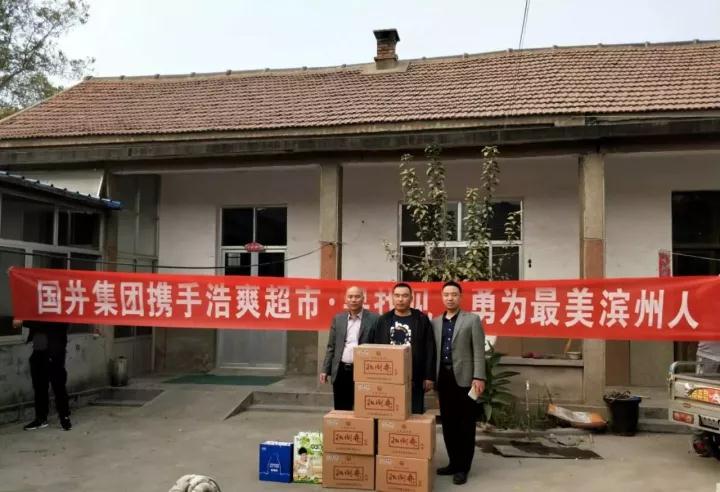 國(guó)井酒業(yè)為傳播正能量,弘揚(yáng)見(jiàn)義勇為精神。經(jīng)多方打聽(tīng),在浩爽零批超市老板的幫助下 找到見(jiàn)義勇為者。國(guó)井集團(tuán)駐濱州辦事處領(lǐng)導(dǎo)進(jìn)村慰問(wèn)見(jiàn)義勇為救人者。